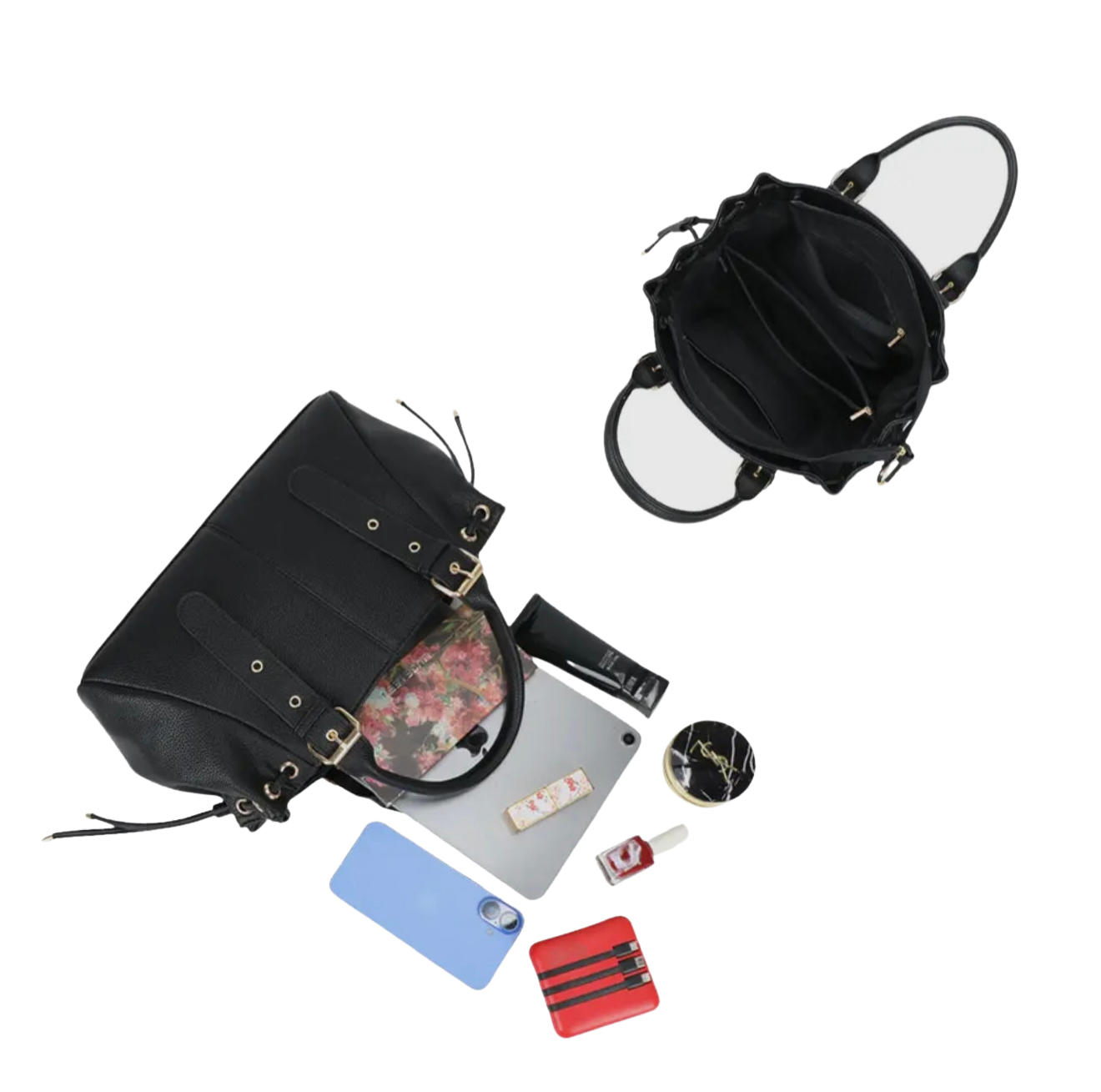 De tas is te dragen als handtas of als crossbody tas dmv de meegeleverde en verstelbare strap.